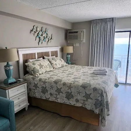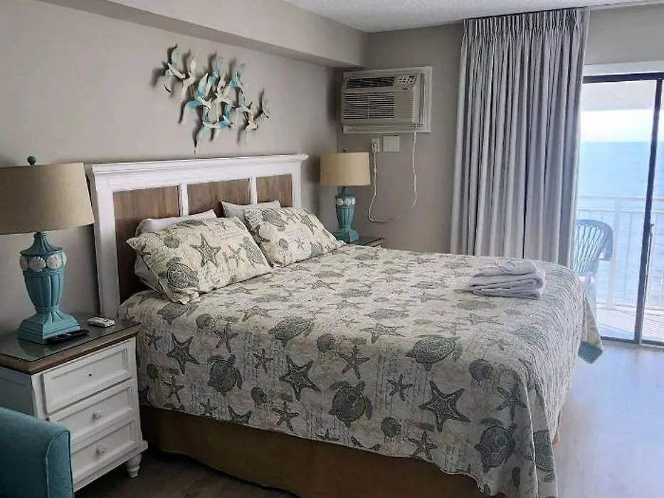 Situated only an 11-minute walk from Midway Park, the 1-room Oceanfront Efficiency T1106 Apartment Myrtle Beach provides guests with Wi-Fi for either business or leisure.